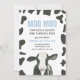 MOO MOO! Watercolor cow with cow print and light blue plaid back 2nd birthday party invitation.