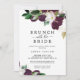 Este moody brunch roxo com o chá de panela da noiva é perfeito para um chá de casamento moderno. O elegante design floral apresenta flores púrpura de ameixa escura e tulipas brancas com folhas verdes esmeraldas e sotaques dourados.