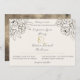 Para um elegante casamento marrom e ouro. Um convite romântico e moderno para personalizar com seus nomes e detalhes de casamento. Centrado no destaque de um mural de arte-line em ouro e branco, com delicados buquês florais desenhados. O fundo da frente é marfim ( personalizável na ferramenta design (configuração de fundo). O reverso é uma textura de vidro de mercúrio fumado com uma linha de arte floral desenhada manualmente. Um padrão de textura de tinta dourada suave no buquê floral de pedônia central e inversa. Esta versão 2 tem desenhos florais de linha de tinta sem preenchimento branco.