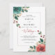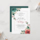 Este design apresenta um arranjo floral dramático com floração profunda e sotaques vermelhos vibrantes, compensados por verde botânico e toques de ouro. Seu estilo artístico rico evoca um sentido de elegância romântica, perfeito para uma ocasião celebratória sofisticada.