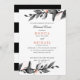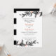 Folha e flor elegantes inspiraram o casamento. O convite de Janto de ensaio é design com um delicado galho de folhagem em preto, tinta de cinza e coral em fundo branco. Cartões invertidos a faixas pretas e brancas. Um design moderno e clássico para casamentos chic elegantes para qualquer estação. Coordene-se para a coleção de casamentos de Luz Bloom.