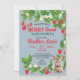 Faça sua festa doce com este convite para chá de fraldas floral de morango. Personalize com os detalhes do seu partido.