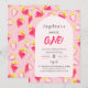 O convite de 1º aniversário é decorado com um delicado padrão de morango doce.