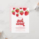 Morango Dois Doce segundo aniversário! Convite de aniversário de morango de aquarela com xadrez rosa de volta.