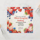 Um adorável convite personalizável que inclui morangos e mirtilos de cor aquosa.