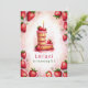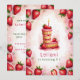Celebre um aniversário especial com este delicioso convite de bolo de morango "L"! Este charmoso design de aquarela apresenta um bolo divertido e festivo, com a forma da letra "L", decorado com morangos frescos, gelo cor-de-rosa, e uma vela de aniversário brilhante. O fundo cor-de-rosa macio com morangos dispersos adiciona um toque lúdico. Personalize com o nome, a idade e os detalhes da festa do seu filho para uma comemoração de aniversário com um morango. Perfeito para crianças que amam festas de temas frutas ou aniversários de verão!