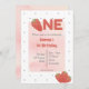 Convite de aniversário temático de morango. Letras brilhantes com morangos. Detalhe doce de bolinhas no verso. Vermelho e rosa. Perfeito para o primeiro aniversário de bebê ou criança, Edite facilmente o texto moderno e divertido. Combina com o tema de festa tutti fruity / twotii fruity ou tema berry sweet. Encontre acessórios correspondentes na loja Gemma Harlow Creations ou transfira o design para seus produtos favoritos.