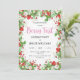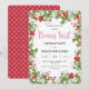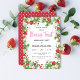 Prepare-se para uma festa de aniversário doce de fruta! Este é um convite de festas doce com um quadro feito de manchas de morangos, flores brancas e verde. É complementado com uma fonte divertida e um lado inverso das sementes de morango giro. Perfeito para a primeira festa de festa de aniversário da sua doce menina. Personalize facilmente com suas próprias informações.
