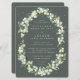 Amoras de neve pintadas à mão e caules de eucalipto dispostos em um belo quadro botânico contra um fundo verde-cinza escuro. Todo texto é totalmente editável e os pontos dispersos na frente e atrás podem ser excluídos antes de fazer o pedido, se preferir. Veja esta Coleção na minha loja para convites com opções de texto de alternativo, diferentes cores/formas/tamanhos e para coordenar itens.