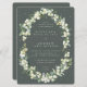 Amoras de neve pintadas à mão e caules de eucalipto dispostos em um belo quadro botânico contra um fundo verde-cinza escuro. Todo texto é totalmente editável e os pontos dispersos na frente e atrás podem ser excluídos antes de fazer o pedido, se preferir. Veja esta Coleção na minha loja para convites com opções de texto de alternativo, diferentes cores/formas/tamanhos e para coordenar itens.