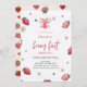Um convite de chá de bebê fofo apresenta morangos aquarela com laço e flores. Esses convites de aniversário são facilmente personalizados para o seu evento, basta adicionar seus detalhes. Este convite encantador combina perfeitamente padrões de gingham atemporais com acentos de morango doces, criando um design delicioso e sofisticado que define o tom para uma festa de aniversário memorável.