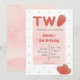 Convite de aniversário tema morango. Letreiro brilhante com morangos. Detalhe de bolinhas doce no verso. Vermelho e rosa. Perfeito para o segundo aniversário de bebê ou criança, Edite facilmente o texto moderno e divertido. Combina com o tema de festa tutti fruity / twotii fruity ou tema berry sweet. Encontre acessórios correspondentes na loja Gemma Harlow Creations ou transfira o design para seus produtos favoritos.