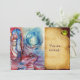 Colorida, caprichosa, romântica, pintura contemporânea figurativa simbolista em aquarela para uma figura lendária espiritual e mística em tons de azul, rosa, vermelho, roxo, violeta e branco por Alessandro Lumini 1988. Design artístico e sofisticado fácil de personalizar para cerimônia de casamento, anúncio de núpcias, cartões de lugar, save-the-date, cartões de agradecimento, chá de noiva, festas de 16 anos, festas de quinceanera, chá de revelação de gravidez, Natal, festa de Natal no escritório, reuniões de família, celebrações de Ano Novo, Dia de São Patrício, Carnaval, festas de Terça Gorda, aniversários, encontros, formaturas, concertos, recitais ou praticamente qualquer evento que você deseje!. Morgan le Fay, também conhecida como Morgane, Morgaine, Morgana e outras variantes, é uma poderosa feiticeira de Avalon na lenda Arturiana. Avalon (provavelmente derivada da palavra celta galesa afal, que significa maçã; é uma ilha lendária presente na lenda Arturiana, famosa por suas maçãs belas. Aparece pela primeira vez no relato pseudo-histórico de Geoffrey de Monmouth de 1136 "A História dos Reis da Grã-Bretanha" como o local onde a espada de Rei Artur, Caliburn (Excalibur), foi forjada e mais tarde onde Artur é levado para se recuperar de seus ferimentos após a Batalha de Camlann. Como
