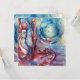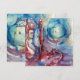 Pintura contemporânea figurativa em aquarela, colorida, caprichosa, romântica e simbolista de uma figura lendária espiritual e mística em tons de azul, rosa, vermelho, roxo, violeta e branco por Alessandro Lumini 1988. Design artístico e sofisticado fácil de personalizar para cerimônia de casamento, cartão de anúncio de núpcias, cartões de lugar, save-the-date, cartões de agradecimento, chá de noiva, festas de aniversário de 16 anos e quinceañera, chá de engajamento romântico, Natal, festa de Natal no escritório, reuniões de família, celebrações de Ano Novo, Dia de São Patrício, Carnaval, festas de Terça-Feira Gorda, aniversários de casamento, encontros, formaturas, concertos, recitais ou praticamente qualquer evento que você desejar! Morgan le Fay, também conhecida como Morgane, Morgaine, Morgana e outras variantes, é uma poderosa feiticeira de Avalon na lenda Arturiana. Avalon (provavelmente derivada da palavra celta galesa afal, que significa maçã) é uma ilha lendária presente na lenda Arturiana, famosa por suas maçãs lindas. Ela aparece pela primeira vez na narrativa pseudo-histórica de Geoffrey de Monmouth de 1136, "A História dos Reis da Grã-Bretanha", como o local onde a espada de Rei Artur, Caliburn (Excalibur), foi forjada e, posteriormente, onde Artur foi levado para se recuperar de