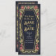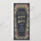 Faça uma declaração ousada de amor eterno. Este casamento gótico "Save-The-Date" apresenta "Till Death Do Us Part" num quadro em forma de caixão, enfeitado com espinhos, rosas e sotaques dourados contra fundo azul profundo. Perfeito para uma comemoração romântica assombrosa! Personalize o texto, a fonte e a cor de fundo para se adequar às suas preferências de design. Correspondência de Itens em nosso compro para um tema completo de festa. Observe que o ouro nos cartões NÃO é folha real e é impresso em cores planas.