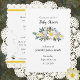 Baby shower invitation with a "mother-to-bee" theme. It's created with a dimensional appearing scrapbook style collage of flowers and bees for a cute retro vibe. A gender neutral design created on a fresh white background. All text is pre-formatted front and back and ready for your own details.