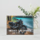 Anuncie a vida do seu ente querido com esta carta que apresenta uma bela ilustração de uma motocicleta estacionada perto de um lago.
