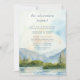 Casal de montanha com chá cênico de cor d'água em tons de azul empoeirado e verde. A cena do lago apresenta montanhas, verde e pinheiros, o lago e um céu leve. Todo o texto é editável, incluindo o título "a aventura começa" e você pode, é claro, mudar o Chá de Casais para um Chá de panela ou outro evento. Se você quiser produtos correspondentes, por favor, navegue na minha coleção Mountain Lake.