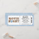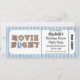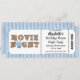 A fun and feminine blue striped ticket-style invitation featuring retro marquee lettering and a cute popcorn icon, perfect for a birthday movie night party. Ideal for cozy home screenings, backyard cinema nights, or slumber party movie marathons. Personalize with your party details for a unique and stylish invite.