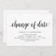 Cartão de mudança de data. Este é o convite de casamento remarcado (adiado / adiamento) cartão (Mudança de data), em tema de design simples e minimalista moderno, fonte preta.