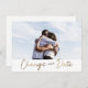 Anuncie aos seus convidados que o casamento foi adiado com estes cartões de mudança de data. Com a sua foto e "mude a nossa data" em roteiro dourado falso. Personalize com a sua foto e detalhes do casamento.