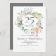 Com uma delicada grinalda floral de aguarela, este cartão de mudança de data de aniversário de casamento de 25 anos botânico elegante pode ser personalizado com as suas informações especiais de aniversário de prata. O verso apresenta uma grinalda floral correspondente emoldurando as suas datas de aniversário em texto branco elegante num fundo prateado. Concebido por Thisisnotme©