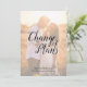 Um cartão de anúncio de adiamento de casamento Mudança de Planos para enviar para sua família e amigos. O texto é disposto de forma elegante, fazendo uso das curvas e linhas da caligrafia. A imagem ao fundo adiciona um toque pessoal e um lembrete de que é o mesmo amor, mas uma data diferente.