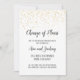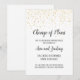 Este elegante Anúncio de Mudança de Planos de Casamento com Confetes Dourados em Caligrafia é perfeito para informar os convidados sobre o adiamento do casamento ou outro evento. O design sofisticado apresenta confetes dourados falsos em um fundo branco, com caligrafia escura e elegante. Personalize o anúncio com o tipo de evento, nomes do casal e a nova data.
