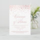Mudança de planos! Anuncie para sua família e amigos o adiamento do seu casamento com este elegante cartão de anúncio. Ele apresenta pontos de confete de folha de ouro rosa falso com padrão de listras. Personalize adicionando seus nomes e outros detalhes. Este cartão de cancelamento de casamento com folha de ouro rosa também será perfeito como um anúncio de casamento íntimo.