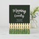 Convite Mudando para o campo com cerca de piquete e grama