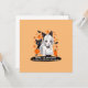 Mulher de anime com gato preto e abóbora de Halloween. Folhas de outono amareladas. Esqueça o cabo de vassoura - vou entrar no Halloween com meu gato.