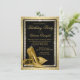 O elegante convite de aniversário preto e ouro da mulher com belos calçados de alto salto de ouro em um elegante fundo brilhante de diamante preto e ouro. Esses elegantes convites de festas de aniversários preto e ouro são facilmente personalizados para seu evento simplesmente adicionando seus detalhes no estilo de fonte e na redação de sua escolha.