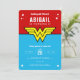 Celebre o aniversário do super-herói do seu filho com estes clássicos convites de aniversário para mulheres azuis e maravilhosas vermelhas. Personalize adicionando os detalhes do seu partido!