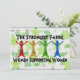 Um arco-íris de mulheres com mãos conectadas ilustra as palavras "O tecido mais forte, as mulheres apoiando as mulheres." Mostre o poder da sua mulher como um pedaço desse poderoso tecelagem.
