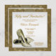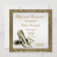 Lace de ouro elegante, branco e fundo dourado com brilho dourado, salto alto, calçados de 50ª convite de aniversário de mulher. Este belo convite de aniversário de ouro para mulheres é facilmente personalizado para o seu partido ou evento com detalhes do evento, estilo de fonte, tamanho de fonte e cor e texto.