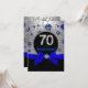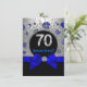 Convite de aniversário real azul e prateado da mulher, setenta com pontos reais azul e prateados e estrelado. Este belo convite de aniversário prateado e azul é facilmente personalizado para o seu evento simplesmente adicionando os seus detalhes no estilo de letra, cor e texto da sua escolha. Este é um design impresso sem joias reais, brilho, arcos, etc.