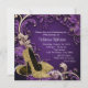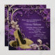 Mulheres roxas e convites de aniversário dourados com belos calçados de salto alto e brilho dourado num lindo fundo roxo e espiral dourado. Este elegante convite de aniversário roxo e dourado é facilmente personalizado para o seu evento simplesmente adicionando os seus detalhes no estilo de letra e cor, texto e layout da sua escolha.
