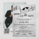 A romantic black and white wedding reception only, post or after wedding invitation featuring two song birds on a musical themed design with grunge lace background.