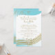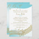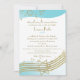 Música no convite do Bar do Ar Mitzvah em aqua e ouro. Personalize com seu próprio texto conforme necessário.