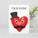 Um legal e suave cara de coração vermelho, cheio de olhos, boca, bigode e um chapéu vermelho, preto!