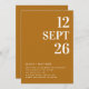 This elegant wedding invitation template features a warm mustard brown background paired with clean white typography, creating a cozy, autumn inspired vibe. The template is fully customizable, allowing you to add your own details, including the wedding date, couple’s names, venue information, and more. On the back, a customizable photo frame allows you to add your personal image. Additionally, a QR code is included, offering guests a quick and easy way to RSVP and access event details. This wedding invitation template is ideal for couples planning a fall wedding, combining modern design with the warmth of the season. Available as both a printed card and a digital download.