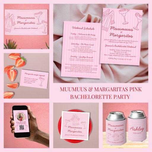 Convite Muumuus & Margaritas Pink & Red Bachelorette