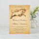 Surpreenda seus convidados com este convite do casamento do conto de fadas que caracteriza um unicórnio bonito do pulo contra um fundo do pergaminho do vintage. Adicione simplesmente seus detalhes do evento neste modelo fácil de usar para fazer-lhe um convite um--um-amável.
