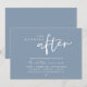 Marque o começo de sua eternidade com elegância usando nosso contemporâneo belo e empoeirado azul rústico, elopemento de casamento Brunch ou cartão de convite para comemoração de almoço, "A Manhã Depois". Perfeito para os casais estendendo sua alegre ocasião, este convite exude sofisticação com uma sugestão de brincadeira, definindo o palco para um evento memorável. Adorado com um tema design de roteiro moderno de eterno, ele adiciona um toque de encanto refinado às suas festividades. Feito por TeeshaDerrick, este convite promete capturar maravilhosamente sua história de amor.