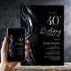 Convite Na moda, aniversário de 40 anos preto e prateado