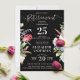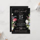 Este elegante Convite para Retirada de Flor Selvagem Na moda Chic Black Lavanda apresenta um design floral boêmio com flores silvestres em um fundo preto chico. A escritura moderna em rosa pastel e branco combina com a tipografia clássica para criar um sentimento sofisticado. A design mostra uma ilustração retrô-antiga de tulipas vermelhas magenta, folhas verdes, flores lavandas, azuis e brancas, evocando a essência de um belo jardim em floração de cheio. O reverso é preto sólido, e todo texto é personalizável. Disponível nos formatos impressão e digital, você pode personalizar seu convite à perfeição. Explore as variações de cor e a coleção de cheios. Peça agora!