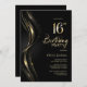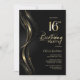 Convite Na moda preto e Dourado 16.a Festa de aniversário
