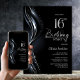 Convite Na moda preto e prata 16.a Festa de aniversário