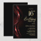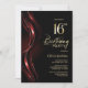 Convite Na moda preto e vermelho 16ª Festa de aniversário