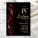 Convite Na moda preto e vermelho 18ª Festa de aniversário
